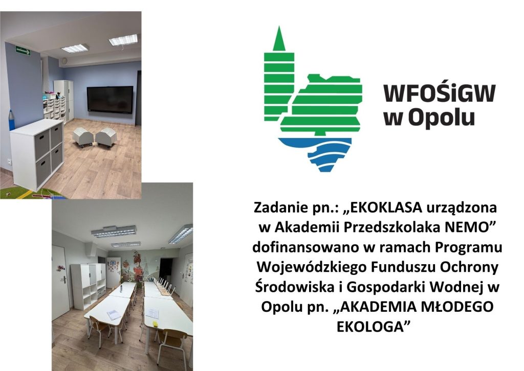 Uprzejmie informuję, że w dniu 27.06.2025 r. Wojewódzki Fundusz Ochrony Środowiska i Gospodarki Wodnej w Opolu podjął decyzję o dofinansowaniu przedsięwzięcia pn.: „Ekoklasa urządzona w Akademii Przedszkolaka Nemo”, na podstawie wniosku o dofinansowanie w formie dotacji, złożonego w dniu 12.03.2025 r. (ostatnia korekta z dnia 17.06.2025 r.) w ramach Programu Wojewódzkiego Funduszu Ochrony Środowiska i Gospodarki Wodnej w Opolu pn. „AKADEMIA MŁODEGO EKOLOGA” – Część 1 – Ekoklasa. Celem projektu jest uatrakcyjnienie zajęć